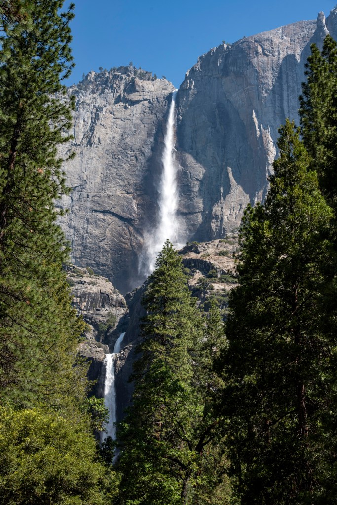 Straight down three thousand feet the torrent runs from high,